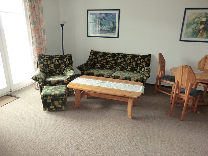 - Im Wohnzimmer: Sitzgarnitur und Essplatz
